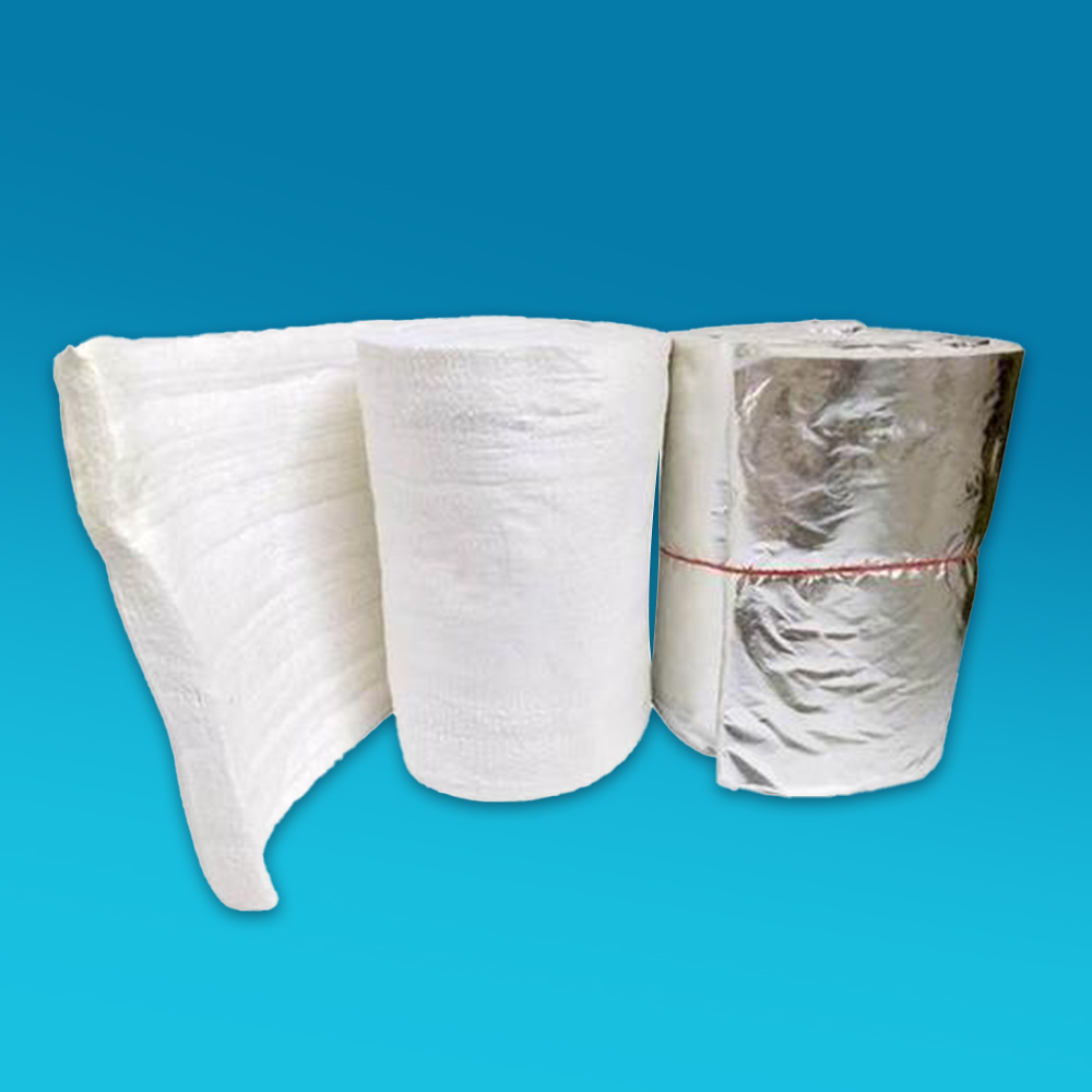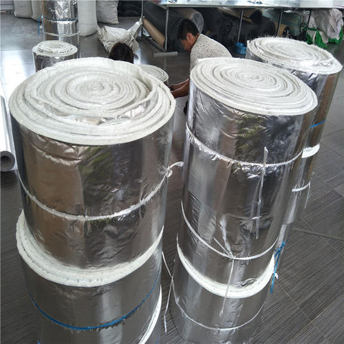 云緯覆鋁箔針刺毯是在現(xiàn)有陶瓷纖維計刺毯的基礎(chǔ)上利用專用機械,通過專用粘結(jié)劑將金屬鋁箔平整地覆到針刺毯表面形成的一種復(fù)合產(chǎn)品。由于在針刺毯表面增加了一層致密 的金屬鋁箔層,有效屏蔽了熱量透過纖維毯向空氣的對流,對輻射熱量形成有效反射,從而極大地提高了產(chǎn)品的絕熱性能。